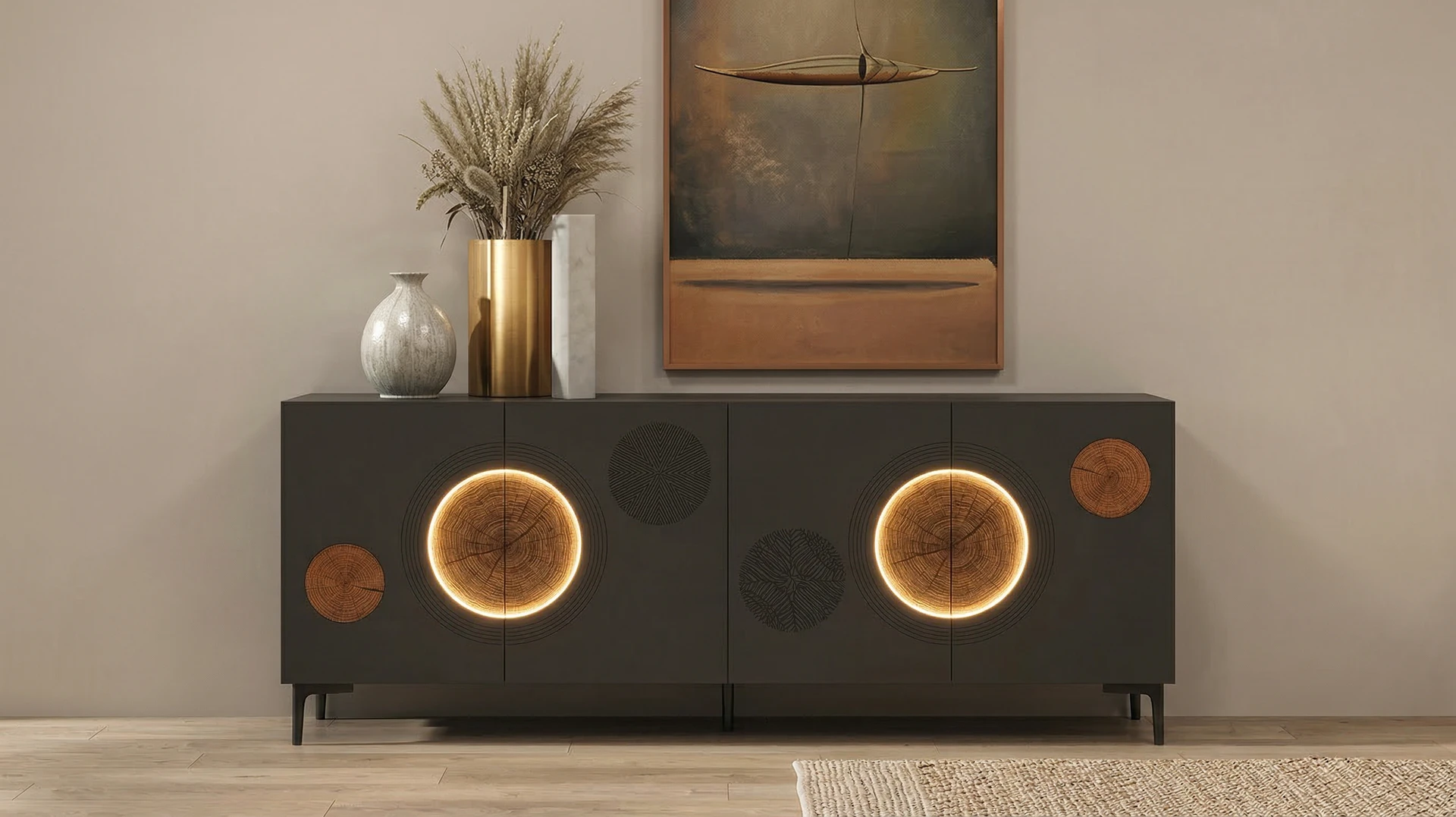 Dessertes, consoles et étagères complémentaires pour un aménagement à la fois fonctionnel et visuellement cohérent.
